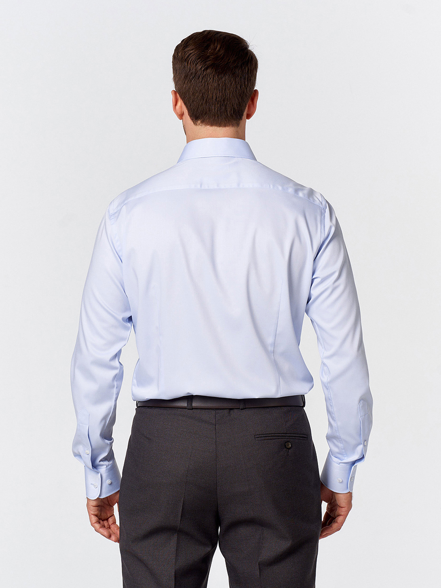 Приталенный вариант имеет заужение по боковым швам в области талии и вытачки на спинке, что позволяет рубашке идеально сидеть на фигуре, подчеркивая мужской силуэт.