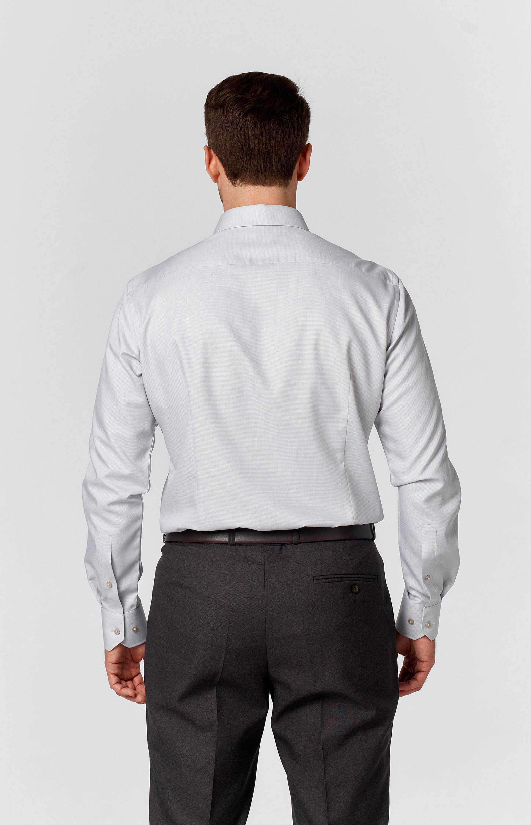 Приталенный вариант имеет заужение по боковым швам в области талии и вытачки сзади, что позволяет рубашке идеально сидеть на фигуре, подчеркивая мужской силуэт.