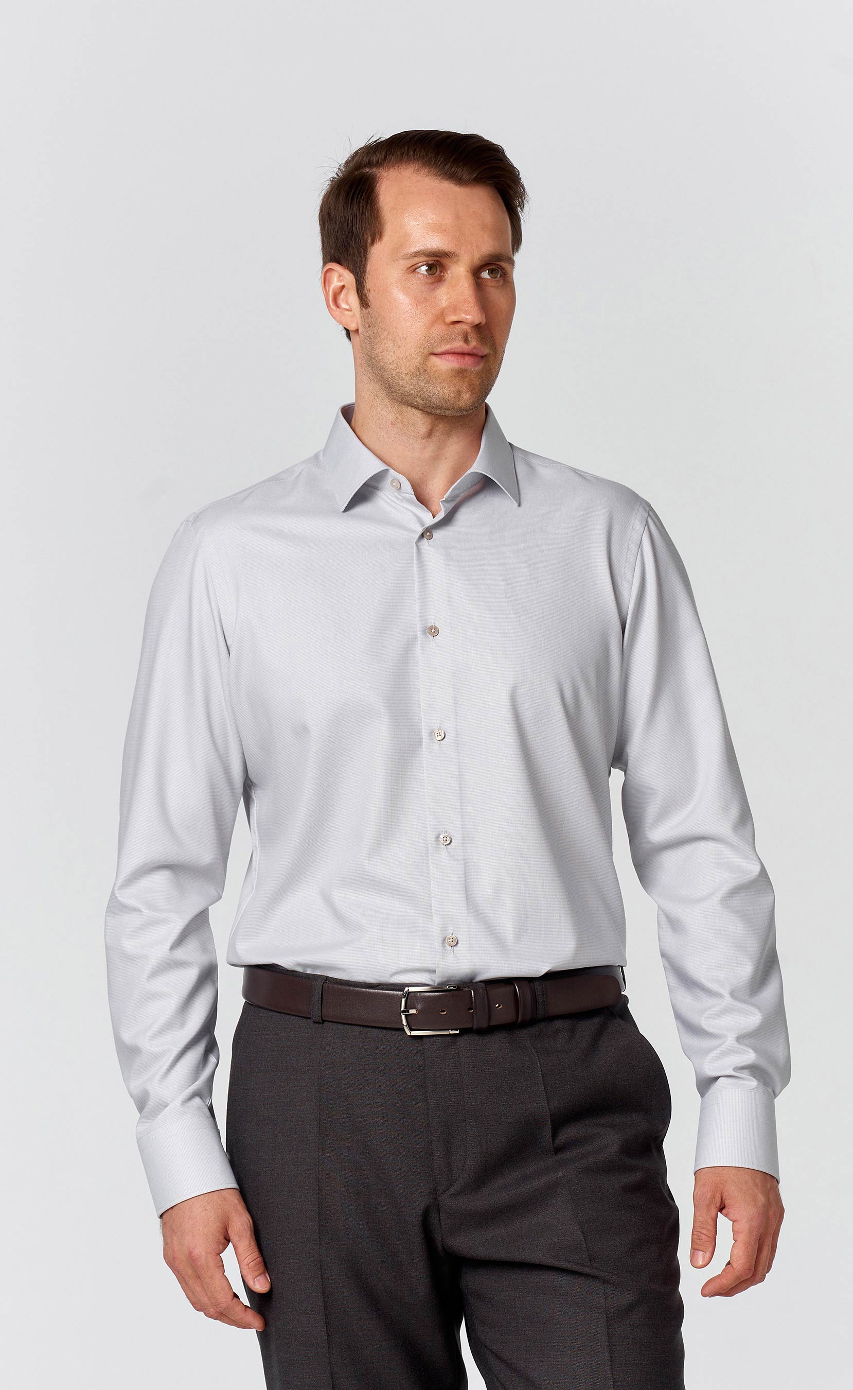 Идеальная посадка – 3% эластана обеспечивают деликатную растяжимость, позволяя рубашке идеально облегать фигуру без скованности движений.