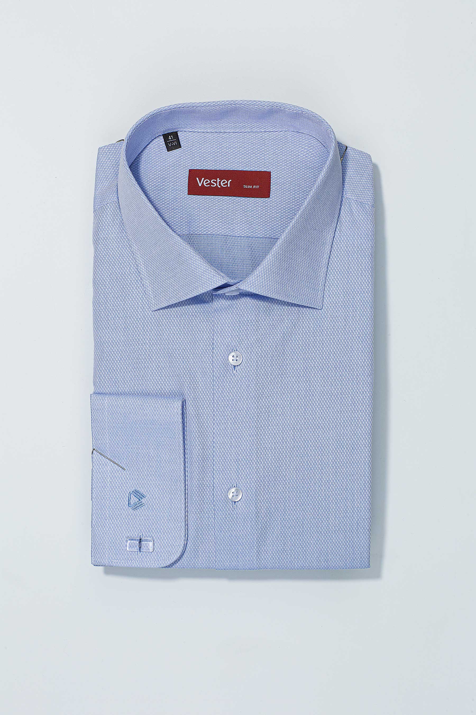 Сорочка мужская VESTER длинный рукав, цыет голубой, хлопок/пэ 70714 12