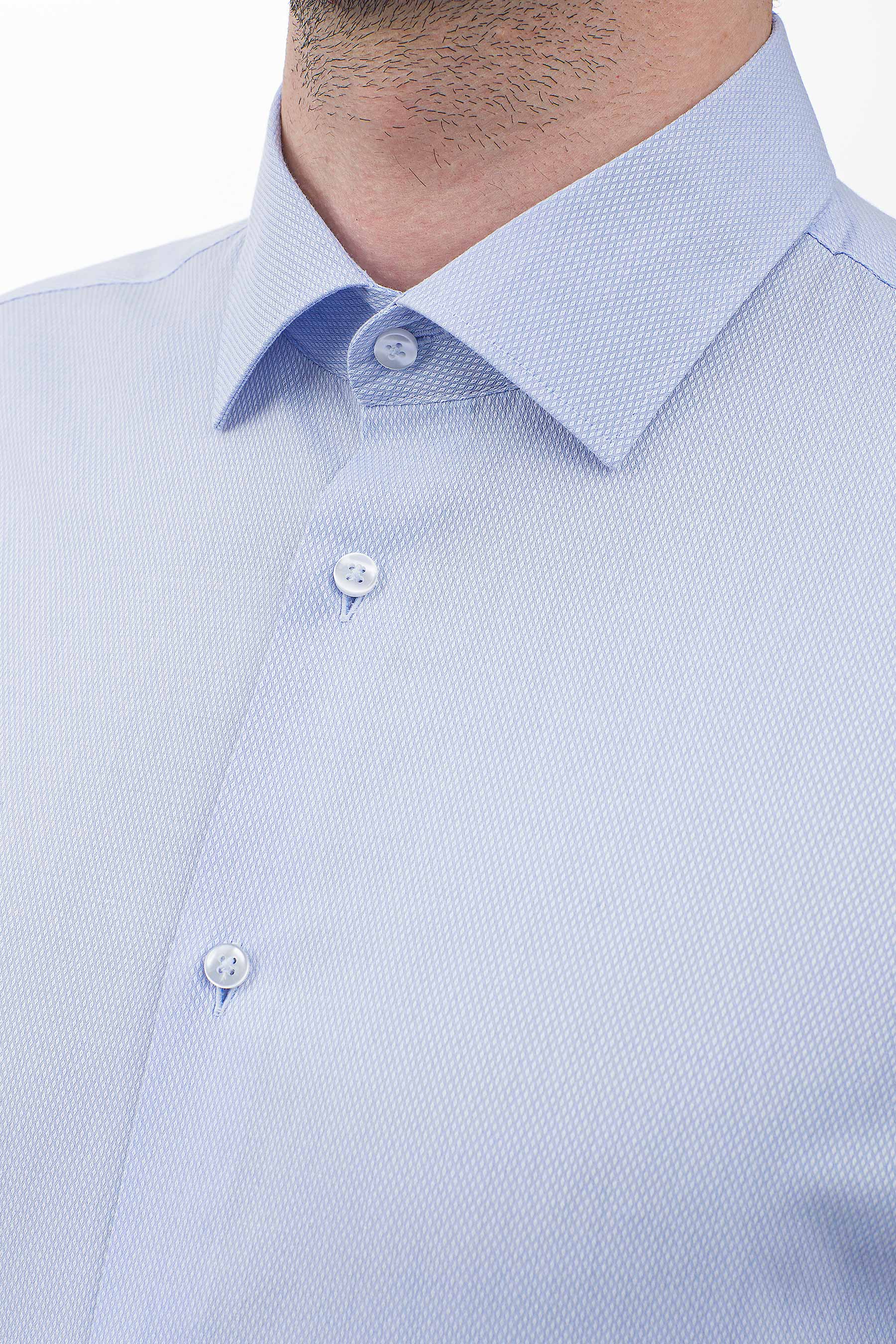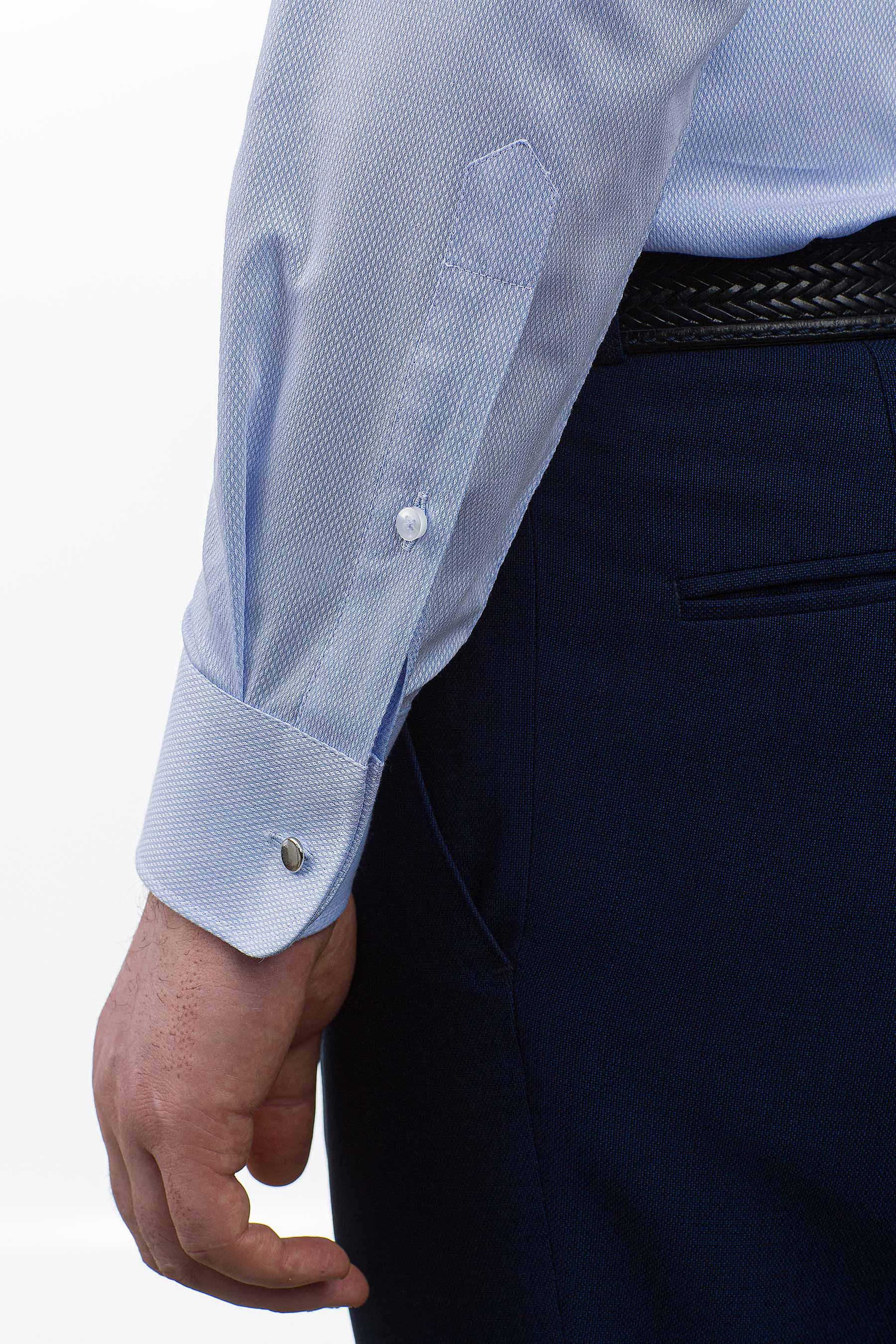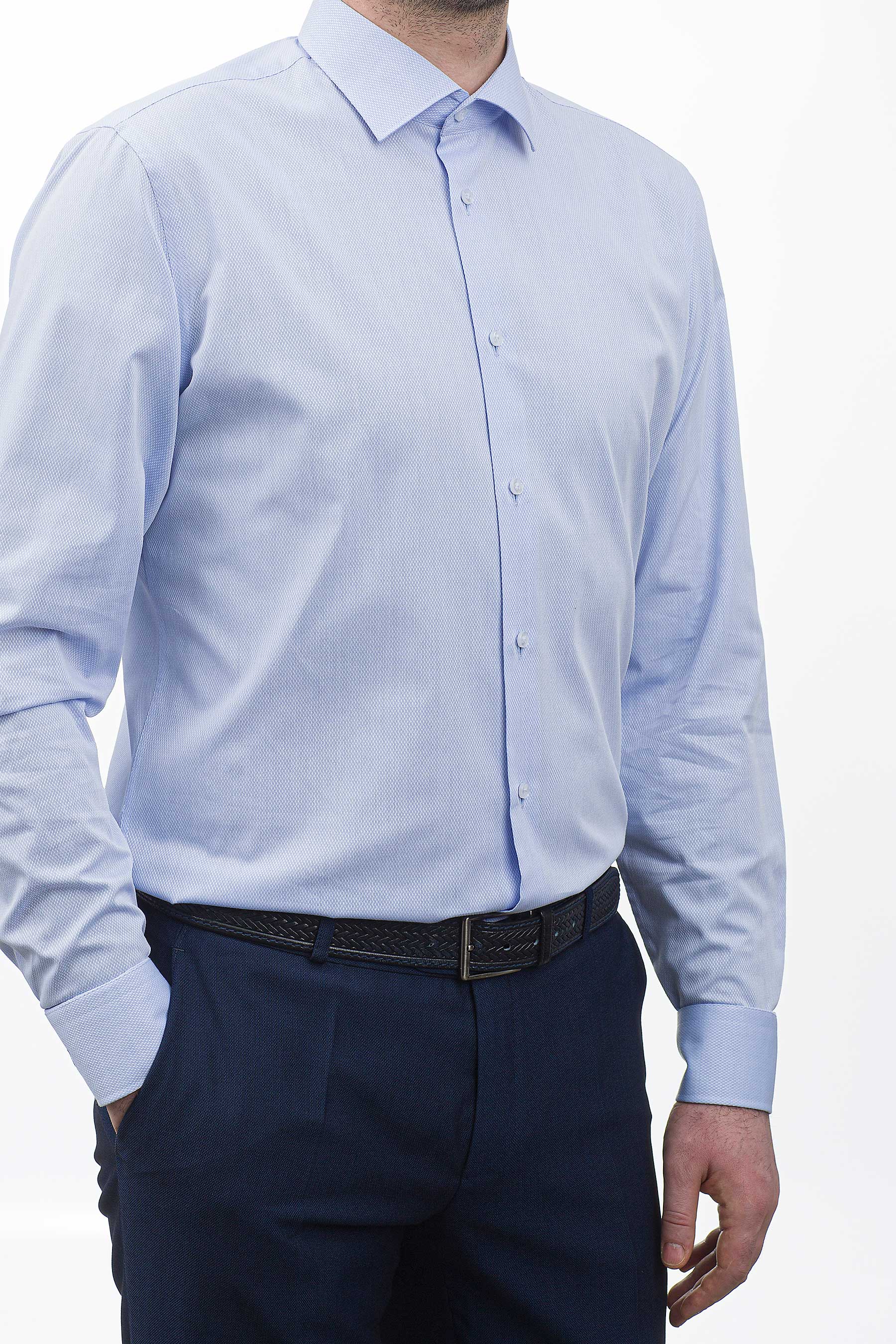 Приталенный вариант имеет заужение по боковым швам в области талии и вытачки сзади, что позволяет рубашке идеально сидеть на фигуре, подчеркивая мужской силуэт.