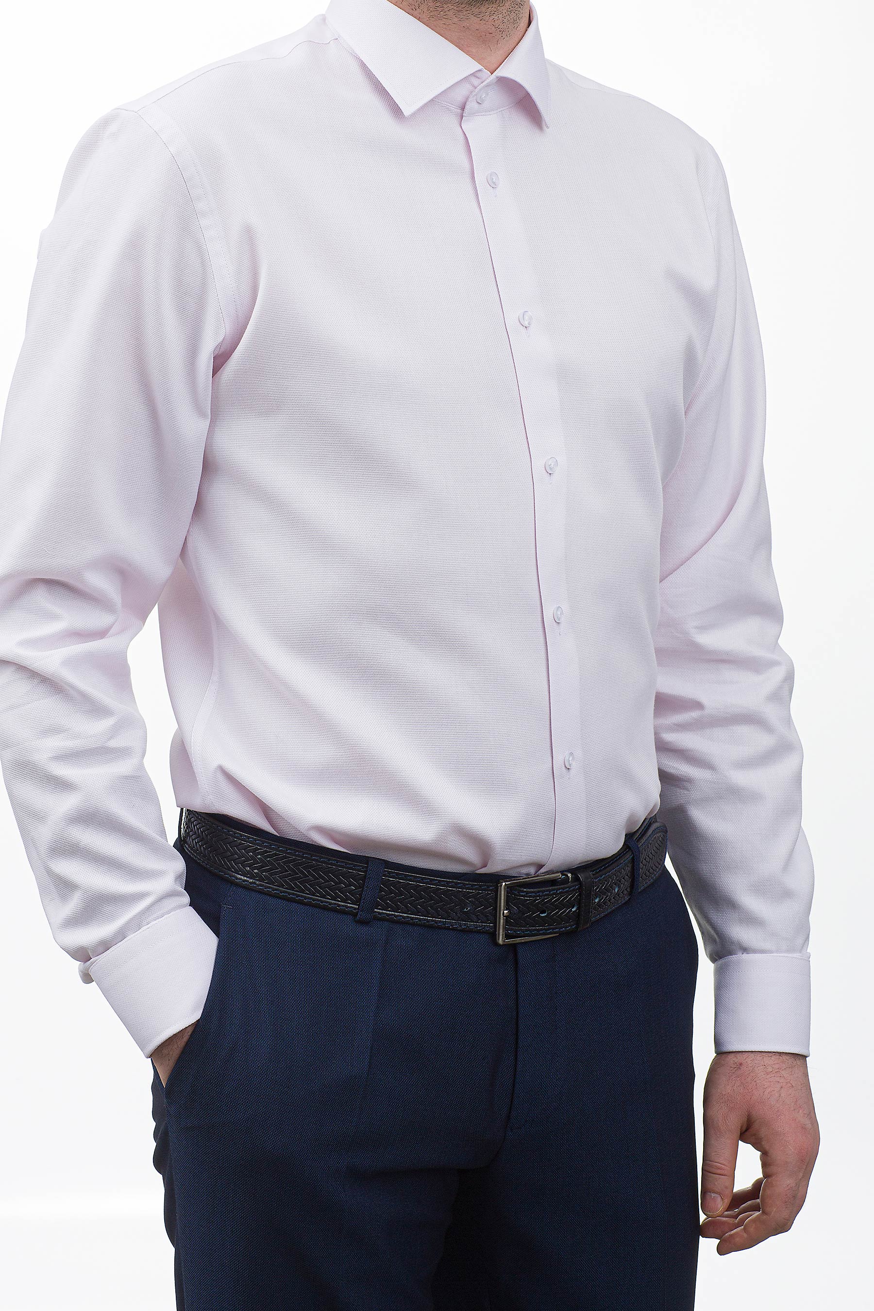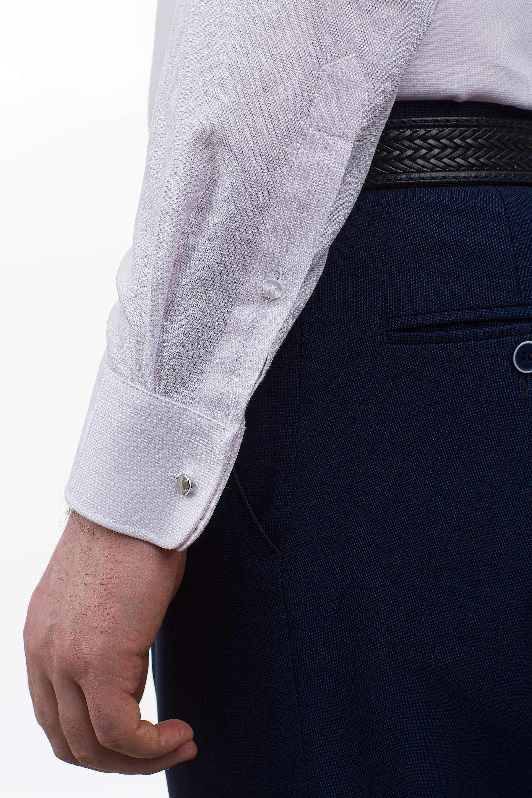 Приталенный вариант имеет заужение по боковым швам в области талии и вытачки сзади, что позволяет рубашке идеально сидеть на фигуре, подчеркивая мужской силуэт.