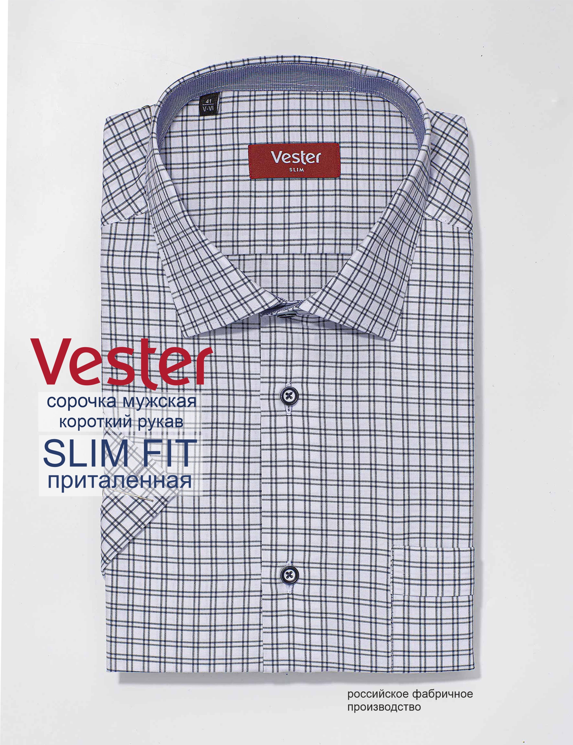 Сорочка мужская VESTER короткий рукав, прямой или приталенный силуэт 72314 49